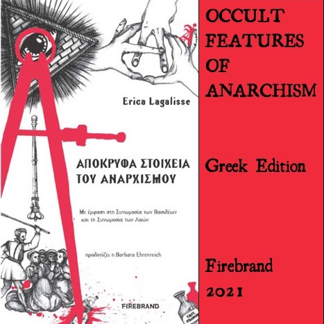 Occult Features of Anarchism – With Attention to the Conspiracy of Kings and the Conspiracy of the Peoples (PM Press 2019) was published in Greek by Firebrand in 2021, under the title Απόκρυφα στοιχεία του Αναρχισμού. Με έμφαση στη συνωμοσία των βασιλέων και τη συνωμοσία των λαών.